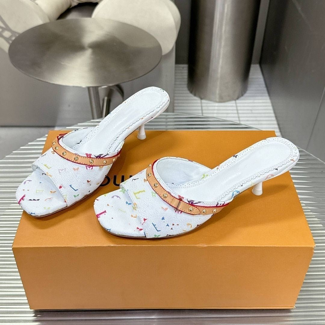 A playful blend of art and elegance, these limited-style kitten heels feature a glossy finish and colorful floral accents. Designed with a 55mm lift for comfort and flair — perfect for bold days and luminous nights.